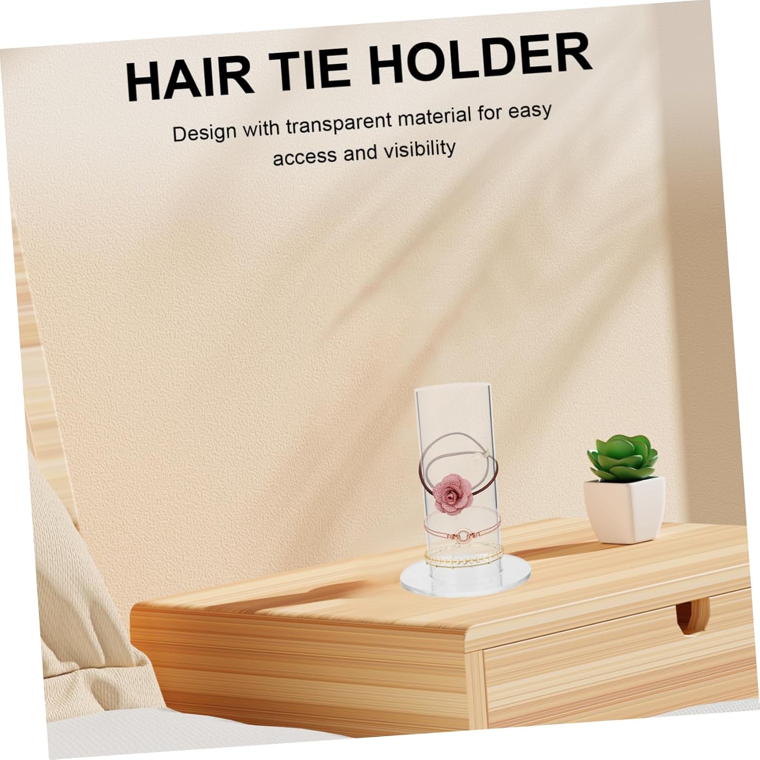 • Hair tie organizer-- our acrylic scrunchy holder is not only for organizing scrunchies, hair ties but also for displaying jewelry, bracelets, watches, and so on,hair tie holder