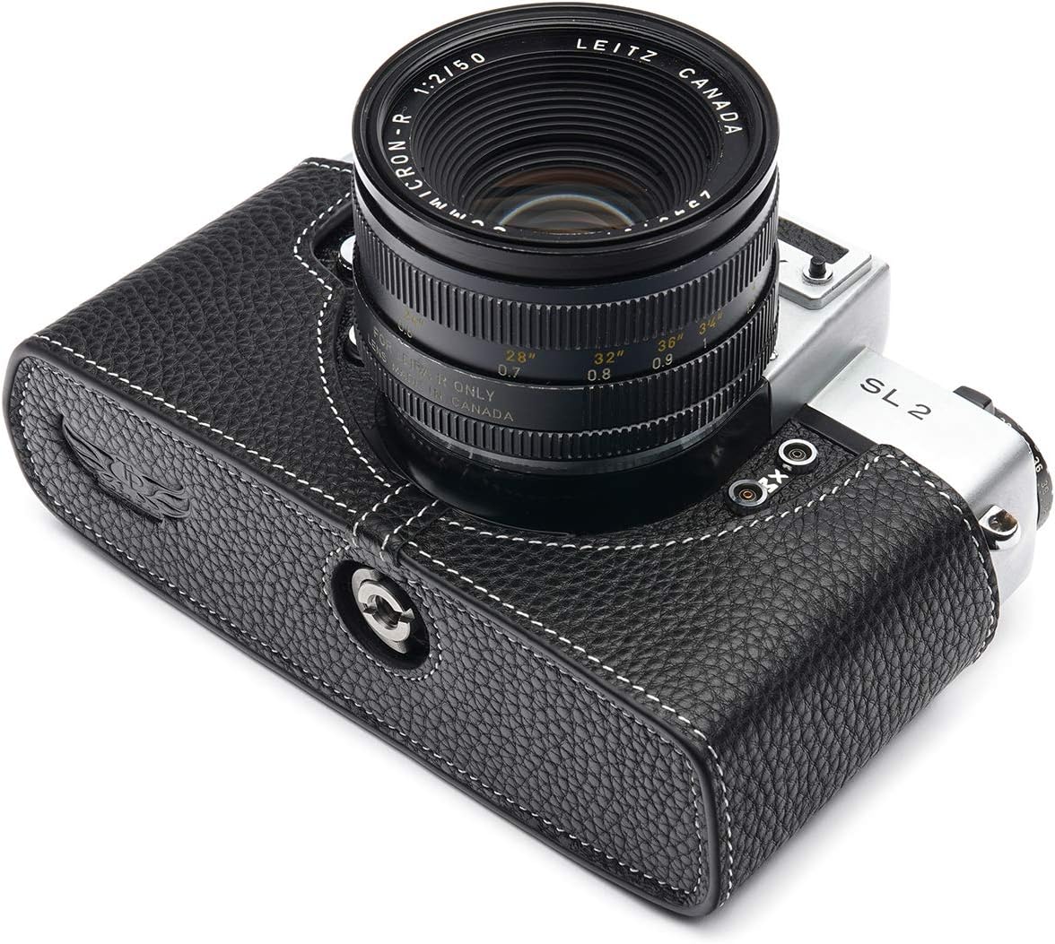 This camera is made by real top layer oil leather, the design is simple and vintage, use Metal sizing techniques make it very fit with the camera body. Inside lining use high lever velvet to protect camera body for scratch and coloration. Under base screw is made by copper and it can easy take off by coin. You don't need to take off the half case when you use tripod. It has a special design for Leicaflex SL2 Camera which makes it easy to turn over the Screen and it will totally not affect screen rotation. You don't need to take off the half case when you connect data lines. Content: 1 x camera half case, 1 x Free Genuine Real Leather Hand Strap, camera not included. Material:Genuine leather.