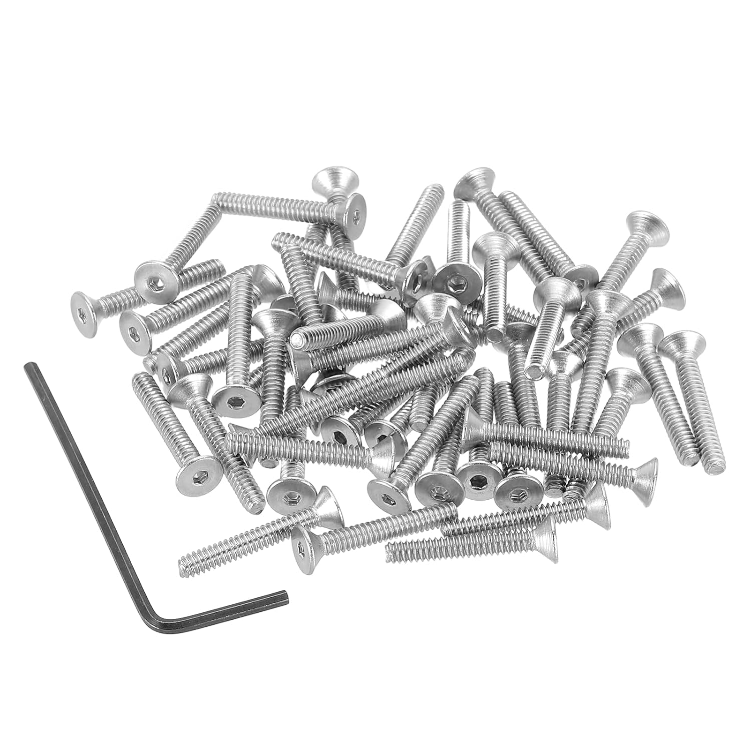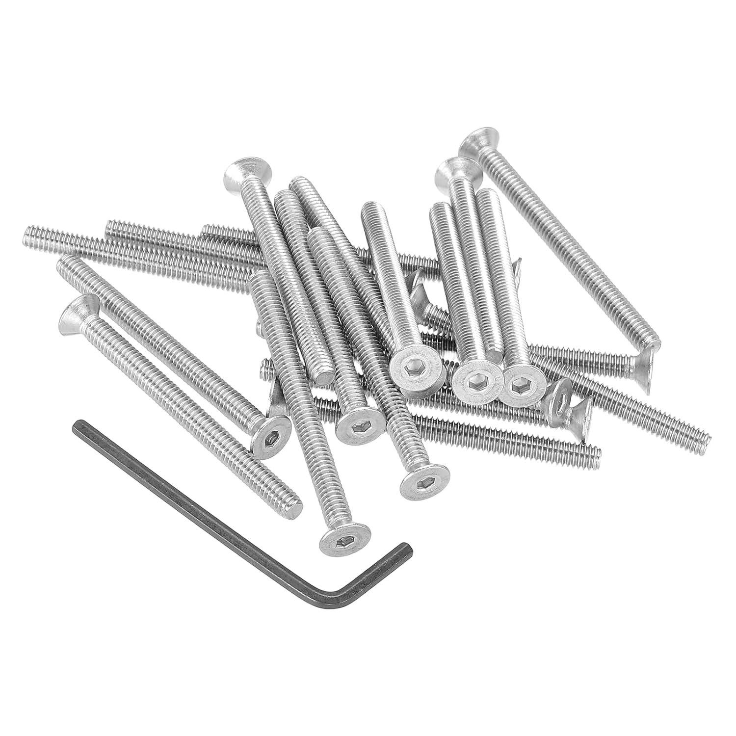This precision countersunk screw has a wide range of applications and is very suitable for the mechanical industry, confidential instruments, electronic products, home appliances, etc. It is widely used in the manufacture and assembly of wooden furniture such as cabinets, chairs, tables, shelves and other household items.SpecificationColor: SilverMaterial: 18-8 Stainless Steel 304Thread Type: #8-32Length: 89 mm / 3-1/2"Head Diameter: 8 mm / 0.31"Packing List: 10 Pcs x Flat Head Socket Cap Screws + 1 Pcs x 3/32" / 2.38mm Hex Key WrenchAdvantage1. The flat head socket cap is made of 18-8 stainless steel 304 , with a smooth surface without burrs, high strength, corrosion resistance, high and low temperature resistance, moisture resistance and rust resistance, suitable for various extreme environments, strong and durable.2. The flat head and countersunk head design can be used in narrow spaces, which can eliminate protrusions and prevent hooking. The threads are neat and clear, evenly loaded, not easy to slip, and can prevent material damage.InstructionEasy to use, equipped with a hex key wrench, it can be accurately installed into the pre-drilled hole for quick assembly.NOTE: Please check the size before choosing our product.