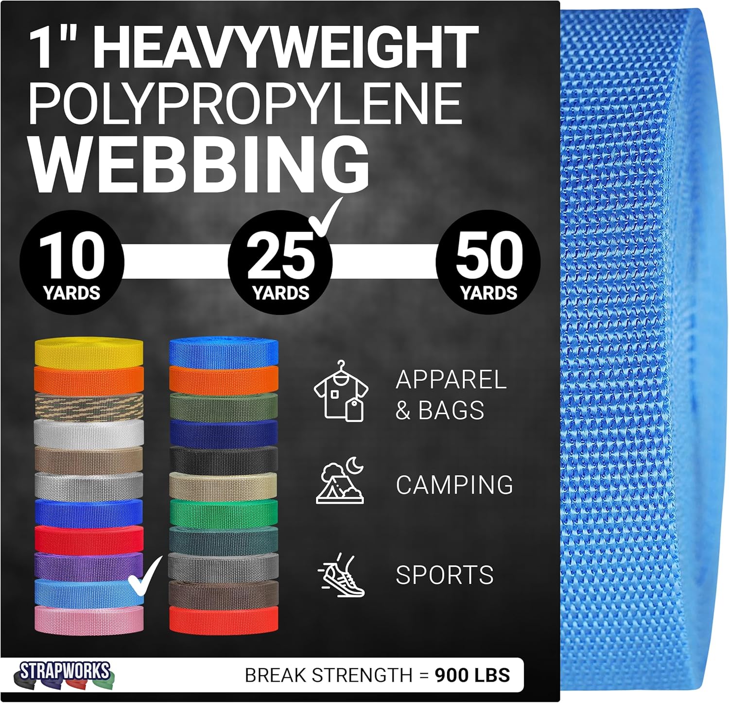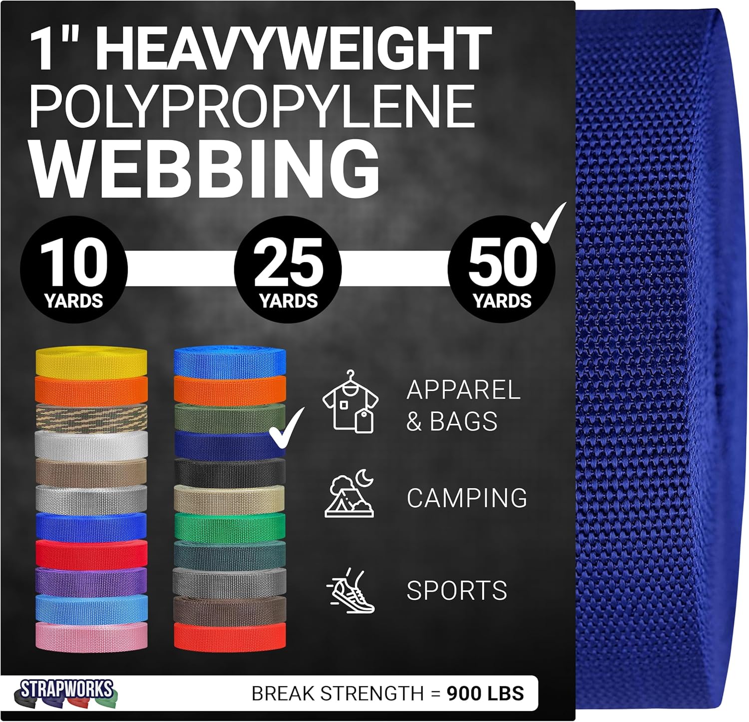 Strapworks Heavyweight Polypropylene Webbing When you need strength, durability and versatility, choose polypropylene webbing from Strapworks. Strong and durable, it has a tensile breaking strength of 900 pounds and measures .06 in thickness. This webbing is moisture and rot resistant. A Favorite Among Outdoor Enthusiasts This webbing is an excellent choice for many outdoor activities. Use this strapping for tie-downs and cargo straps. Take it with you when camping, climbing, boating or rafting. Great for DIY Arts and Crafts Take your craft project to the next level by using this heavy duty webbing. Create handcrafted belts, slides, cams, or ratchets. Use it to make a unique dog leash, guitar strap, replace a purse bag strap, or repair your lawn chair. Please note that dye lots may vary slightly. Why Choose Strapworks? We pride ourselves in being the only US based manufacturer truly offering strap customization from quantity 1 to over 100,000 and anything in between for everyone, business or individual. Strapworks offers the widest selection of webbing sizes and colors, all shipped to you faster than any other supplier. Over the years we have worked with customers in every industry, on every continent, and even in space! Strapworks really is the expert in straps, in business since 1999.
